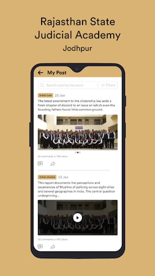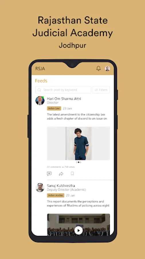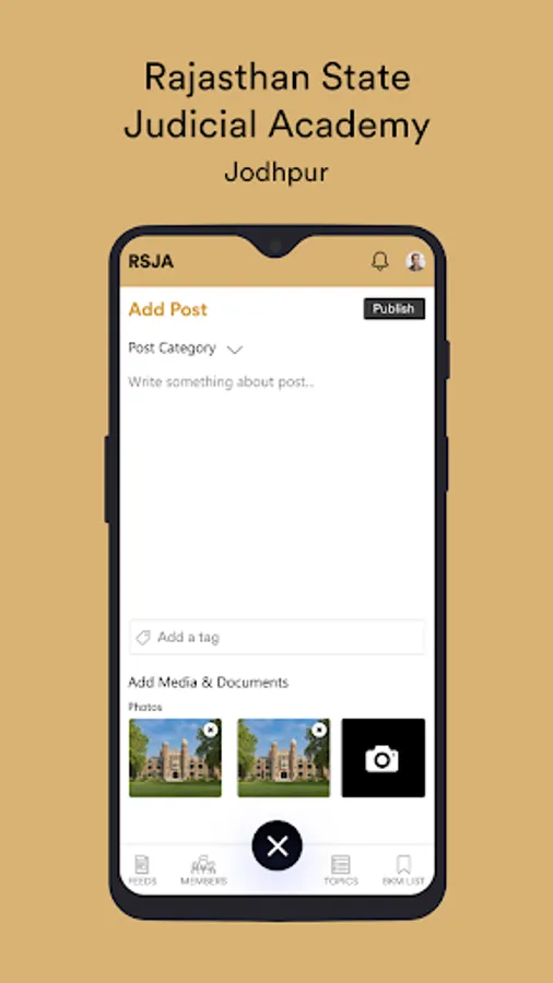 In this application, the member of the organization will be able to view the posts related to the selected topic of interest and will also be able to add new posts as text, images, videos, and documents. The other members on the application will be able to view the post related to their topic of interest. The members will also be able to Bookmark the post and will also be able to share and comment on the post.