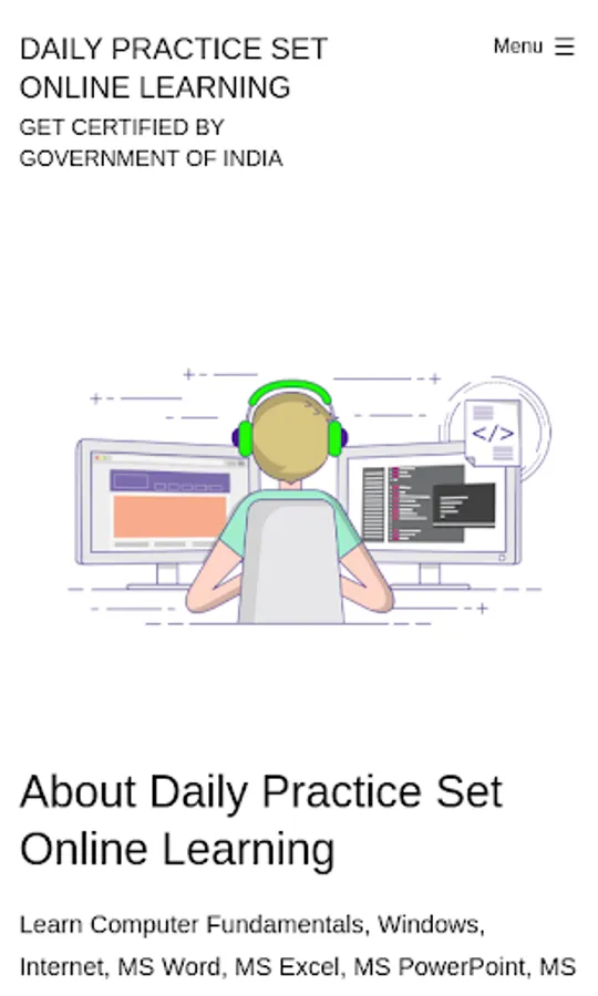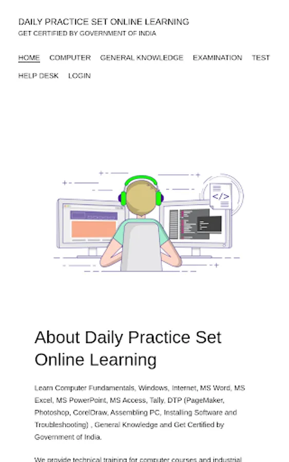Learn Computer Fundamentals, Windows, Internet, MS Word, MS Excel, MS PowerPoint, MS Access, Tally, DTP (PageMaker, Photoshop, CorelDraw, Assembling PC, Installing Software and Troubleshooting) , General Knowledge and Get Certified by Government of India.
