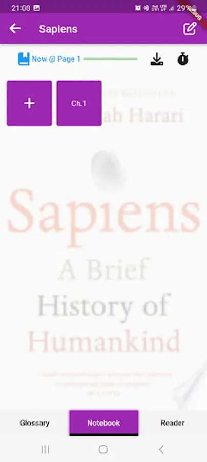 The app allows users to track books they are currently reading. With utilities such as a bookmark, glossary manager, dictionary, notes and PDF Reader, it ensures you get the most out of every page you flip!