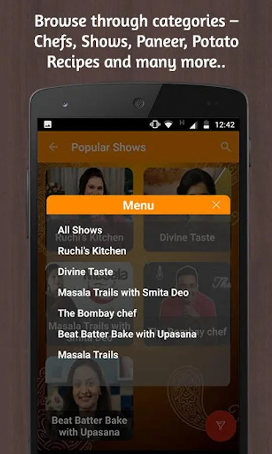 2. Browse through categories – Chefs, Shows, Paneer, Potato Recipes and many more..