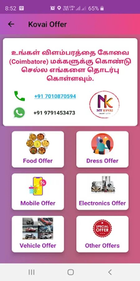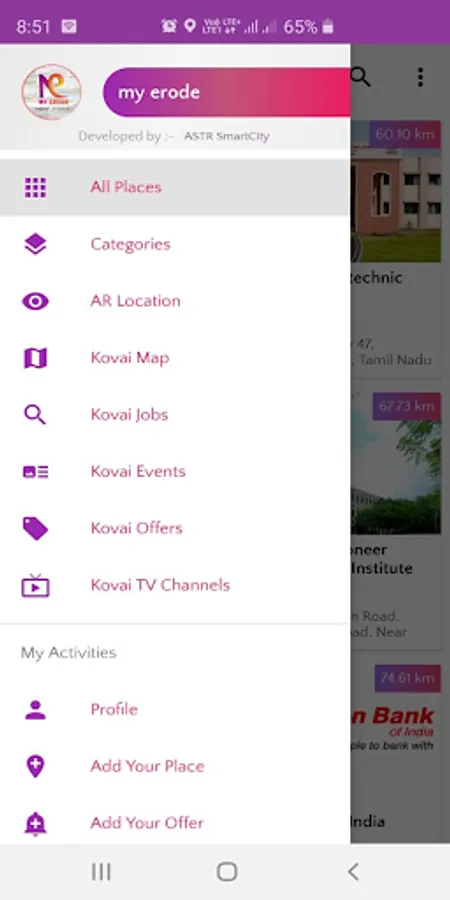 My Kovai (Smart City) is an application of information about important places, Jobs, Offers and shops (Point of Interest) for the city. This application can helps to see the local shop offers and local channels.