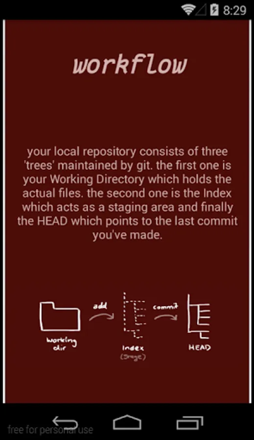 An offline git guidance app based on the website - http://rogerdudler.github.io/git-guide/.