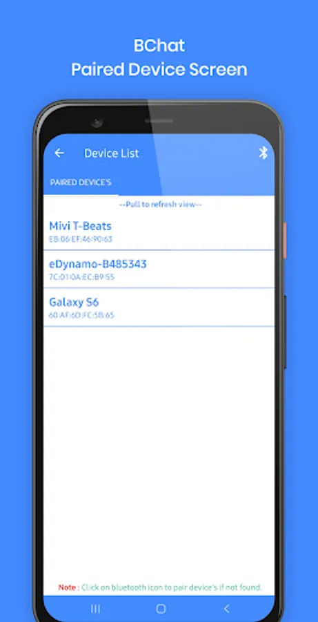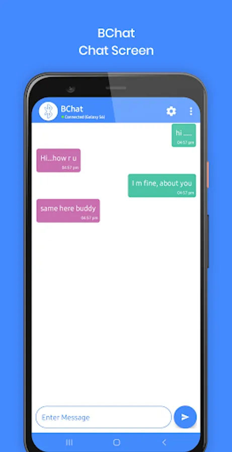 BChat is mobile Communication app,will provide you way of secure chat. You can enjoy messaging via bluetooth on mobile, just make connection together and enjoy chat experience.