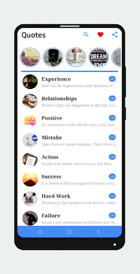 Get huge collection of daily life quotes & sayings by great peoples. You can start your day with amazing thought of great people. This application providing large collection of quotes, which help you to courage, motivate and improve yourself with positive thought and positive attitude.