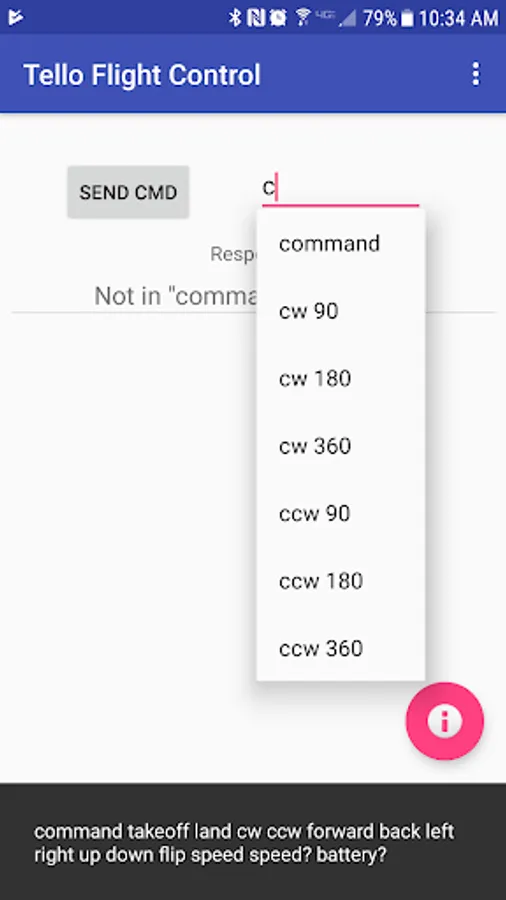 Press the floating red "info" button to see a quick list of command types.