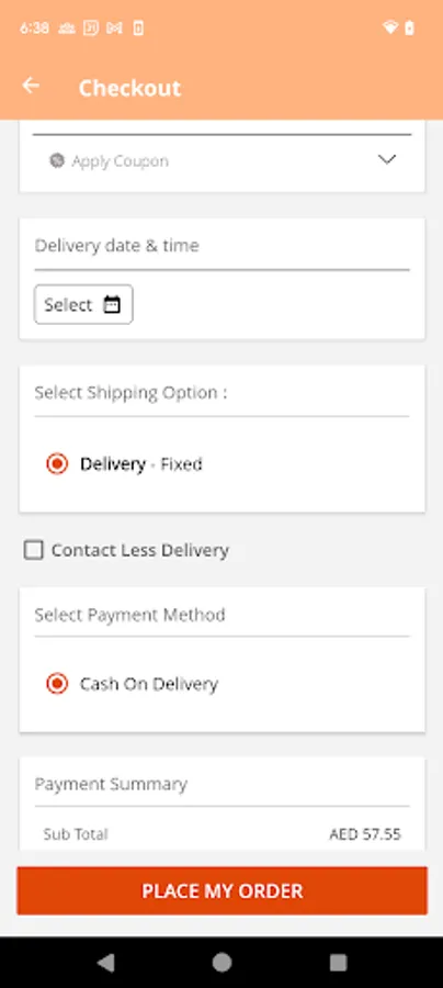 Delivery Slot - Rakcoop Mobile App gives the buyer an advantage to pick the Delivery date and time while placing an order. The time slot can be configured by the admin from the backend.