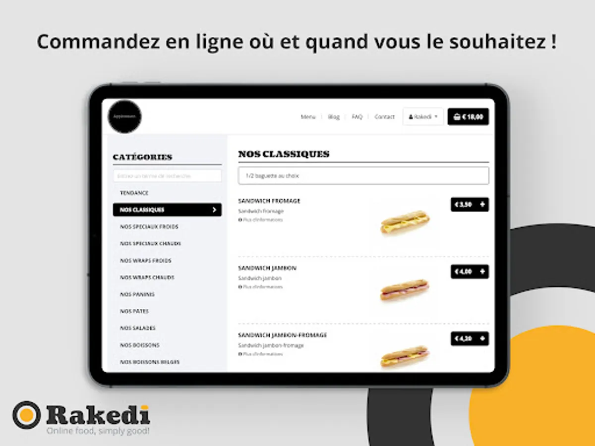 + Always available: You can order online at any time. Avoid queues and order from your armchair, your car, on the road, at work, at school, ...