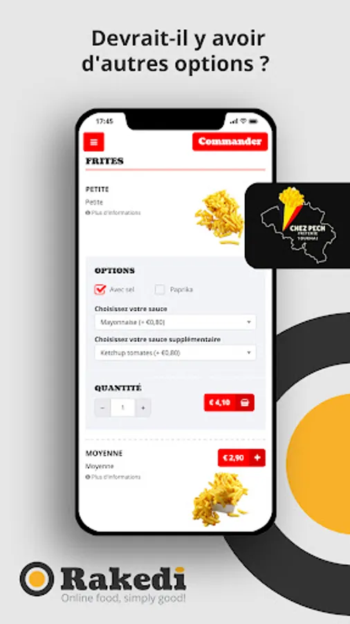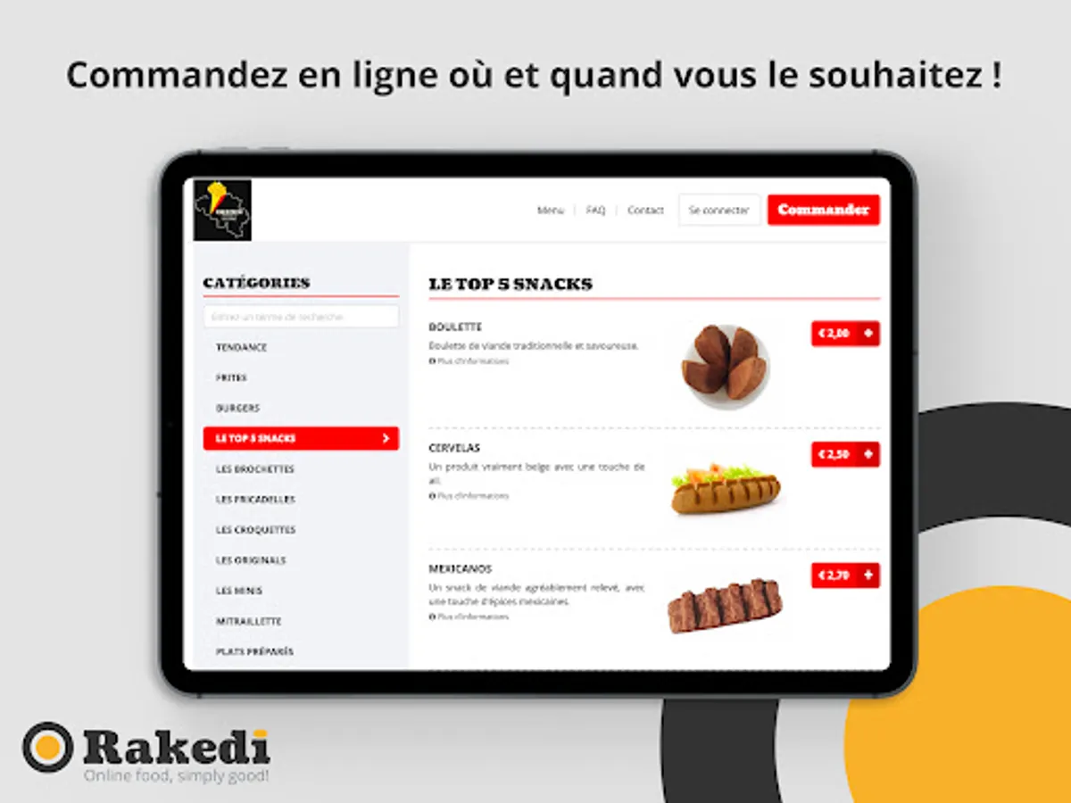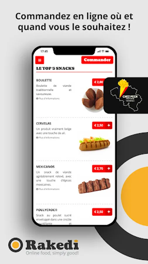 + Always available: You can order online at any time. Avoid queues and order from your armchair, your car, on the road, at work, at school, ...