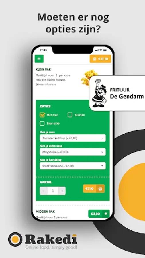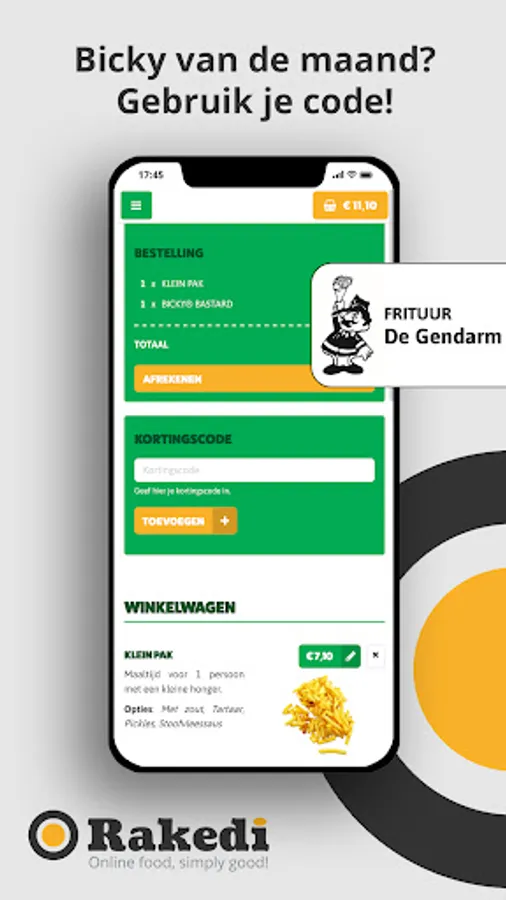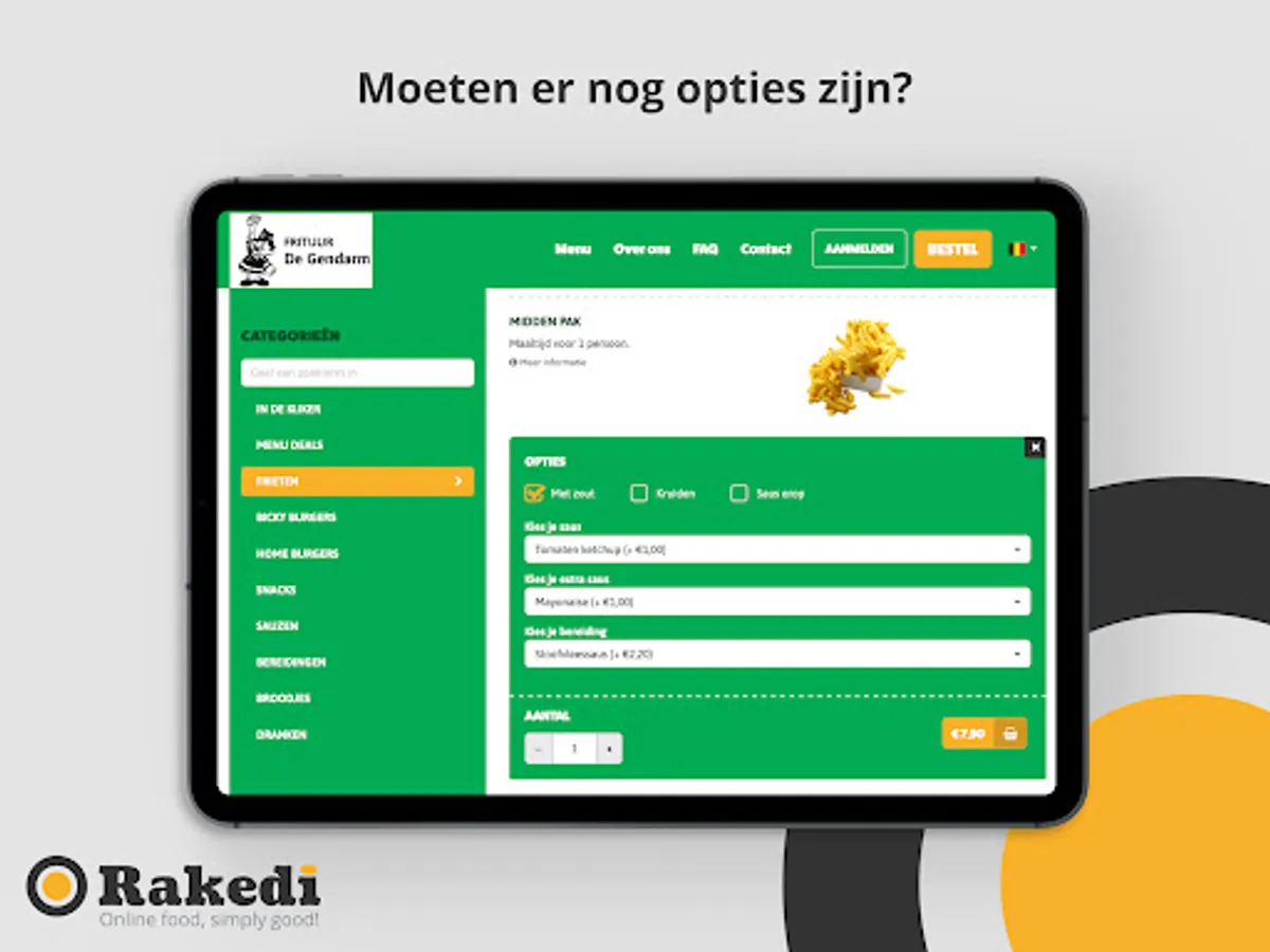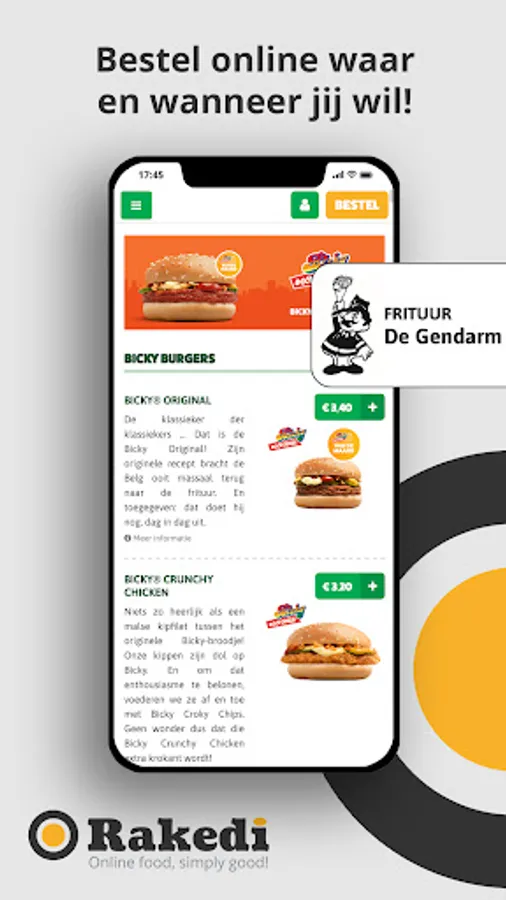 At Frituur De Gendarm we have delicious fries and burgers. Order online via our app.