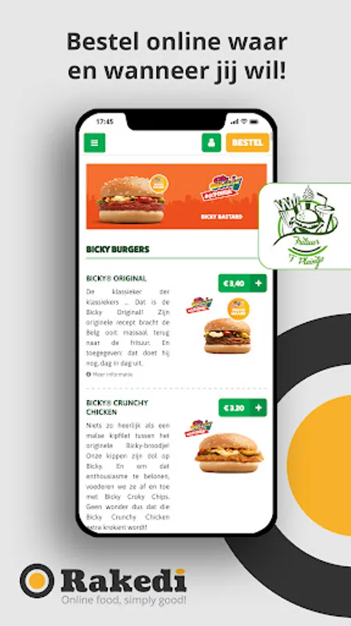 At Frituur 't Pleintje Meensel Kiezegem we have delicious fries and burgers. Order online via our app.