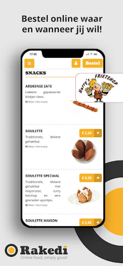 At Harry's Frietshop we have delicious fries and burgers. Order online via our app.