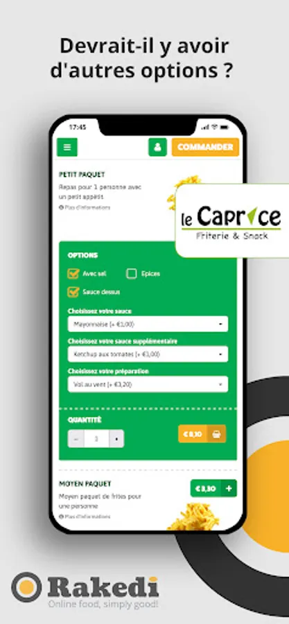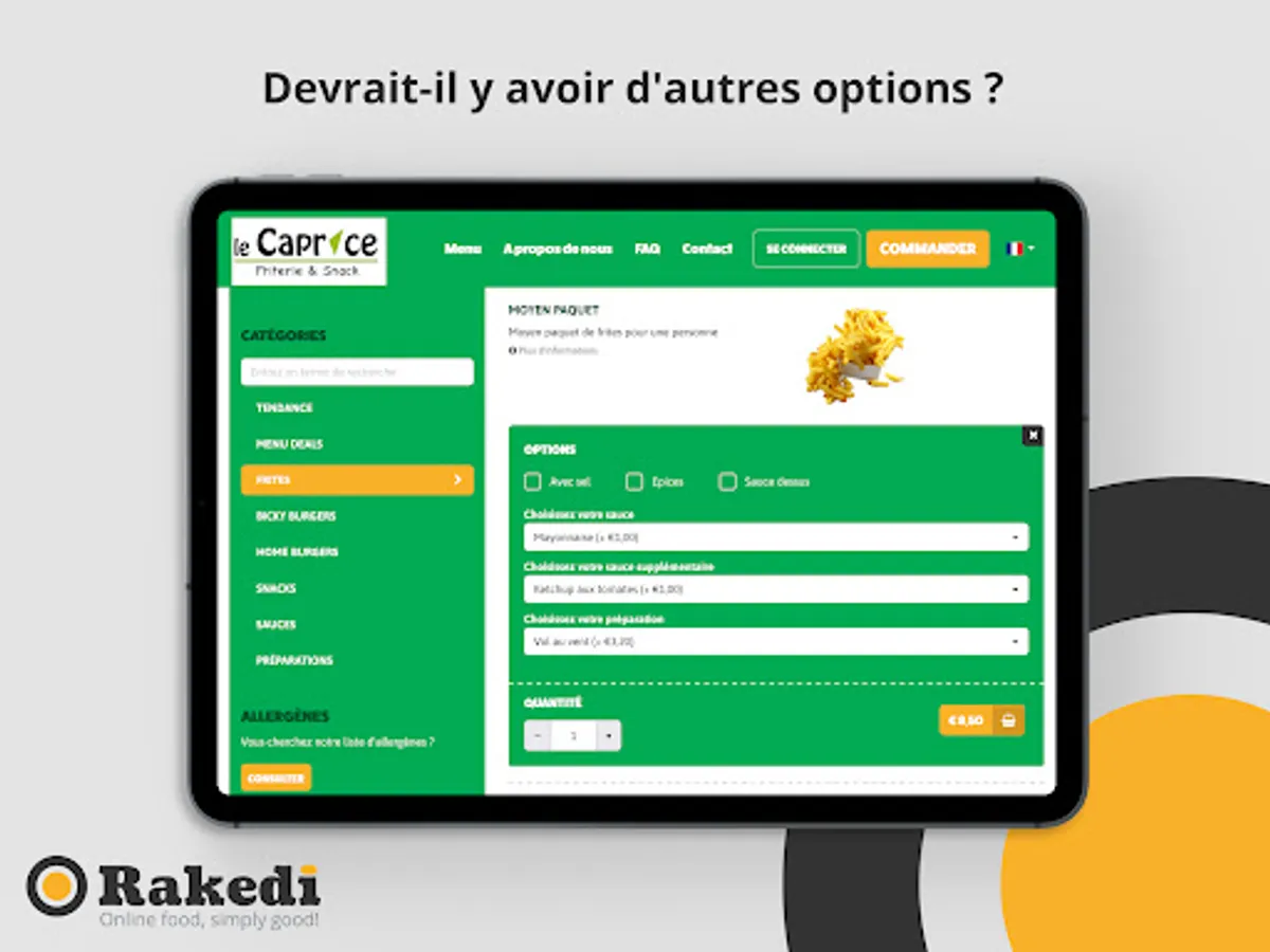 At Friterie Le Caprice, we have delicious fries and burgers. Order online via our app.