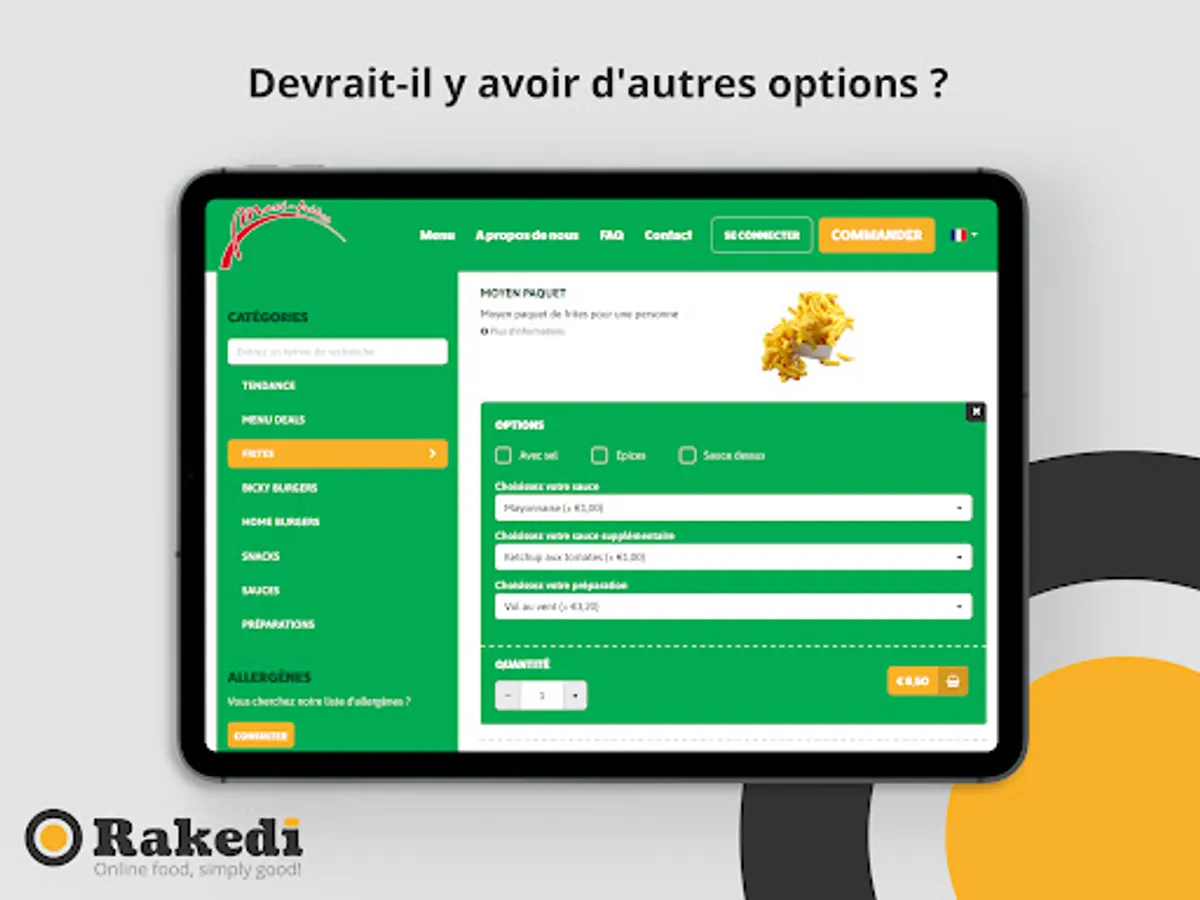 + Always available: You can order online at any time. Avoid queues and order from your armchair, your car, on the road, at work, at school, ...