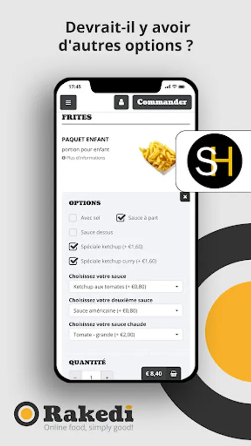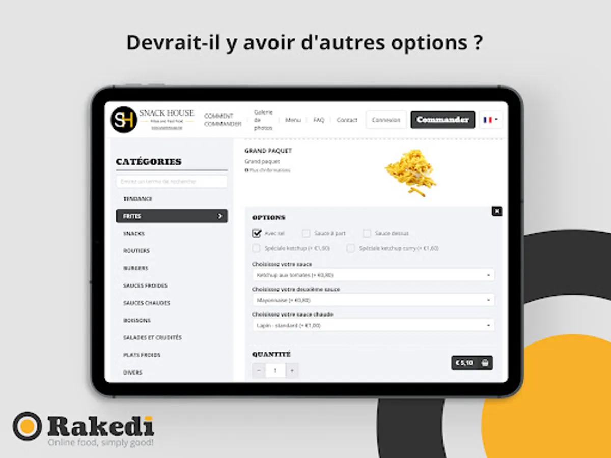 + Always available: You can order online at any time. Avoid queues and order from your armchair, your car, on the road, at work, at school, ...