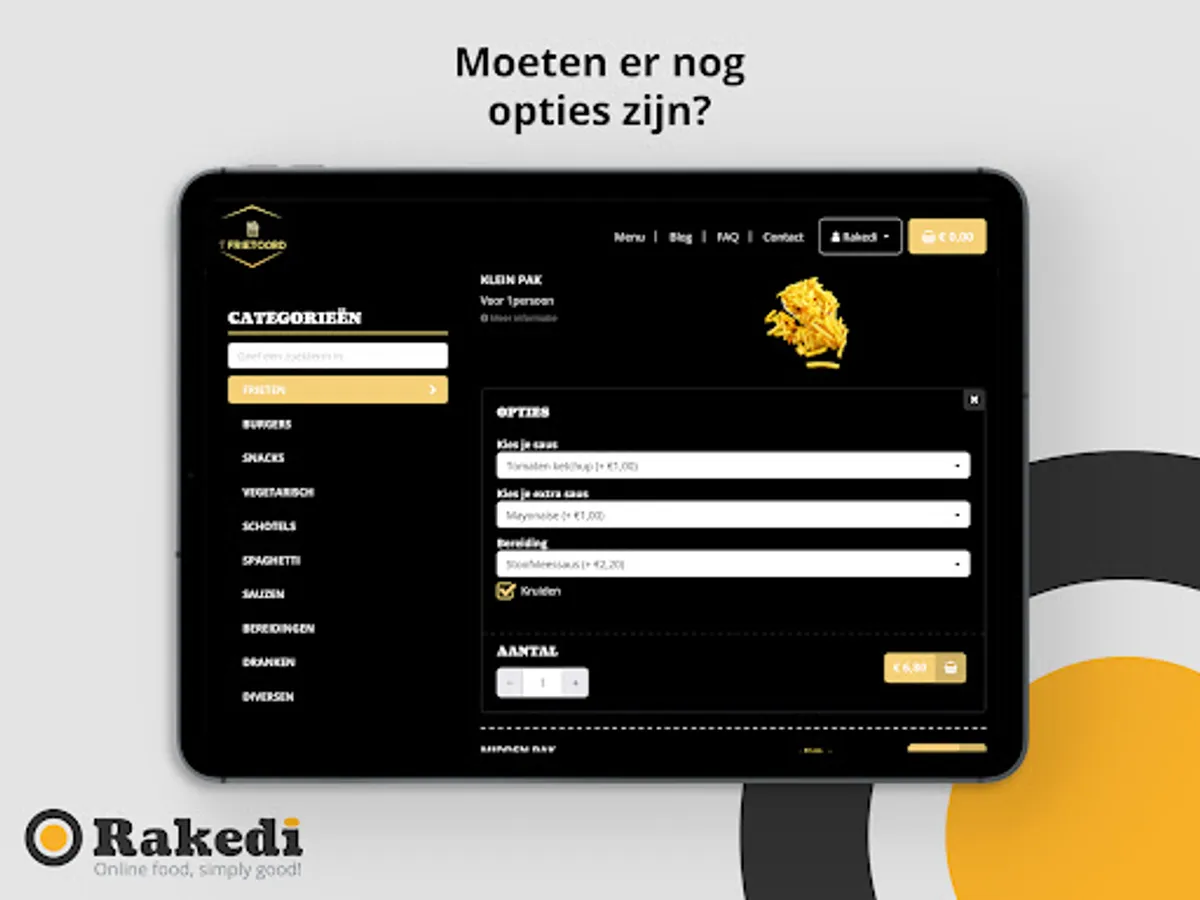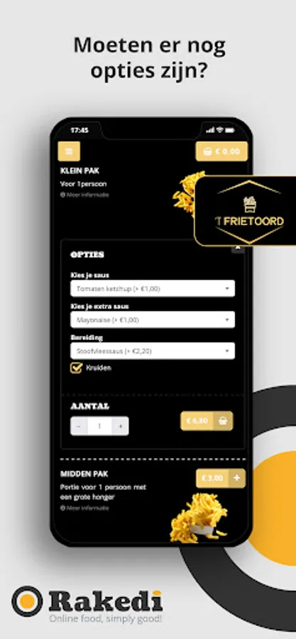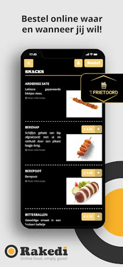 At Frituur 't Frietoord we have delicious fries and burgers. Order online via our app.