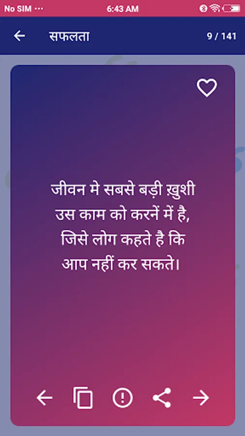 Quotes in Hindi app is a best collection of motivational, knowledge, inspiring, confidence and many more quotes in hindi from famous authors and business persons. This app of motivation quotes for you to download for free.