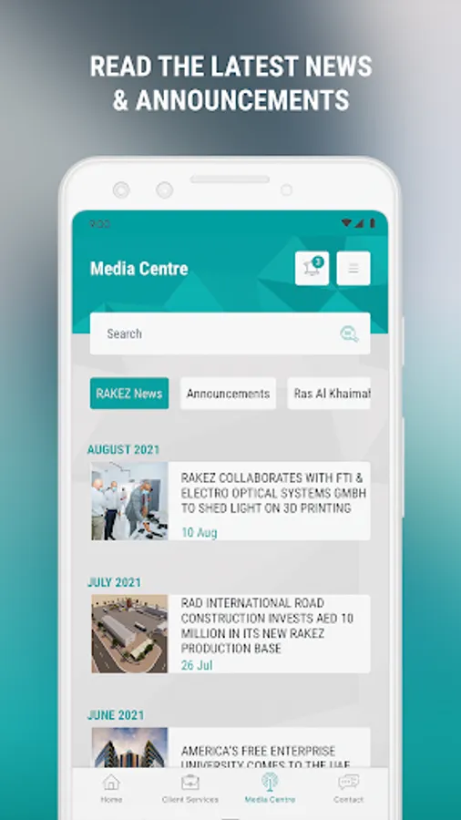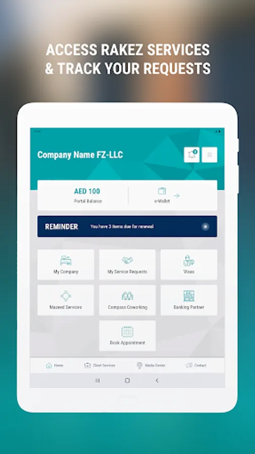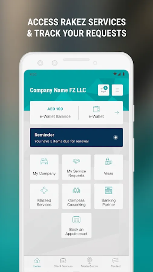 Our mobile app allows you to track the status of your requests, raise enquires, get support, make payments as well as catch up on the latest news. It also provides direct access to RAKEZ Portal 360, a platform wherein our clients can initiate their renewal requests.