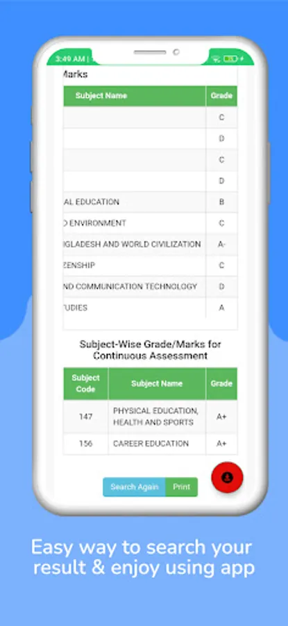 এই অ্যাপ ব্যবহারে পাবেন - JSC,(Vocational), HSC/Alim, HSC(Vocational), HSC(BM), Diploma in Commerce, Diploma in Business Studies. এর রেজাল্ট জানতে পারবেন এবং রেজাল্ট শিট টি পিডিএফ ফাইল আকারে ডাউনলোড করার সুযোগ থাকছে।