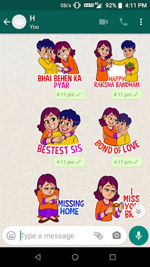 Raksha Bandhan Stickers is a free stickers app for WA with awesome whatsapp stickers like: smile, angry, love, sad, and surprise ETC. This raksha bandhan stickers app offers a variety of beautiful cute, happy stickers, anime stickers that make you're chatting more interesting and funny. You will really enjoy expressing your feeling and emotions with this free sticker app.