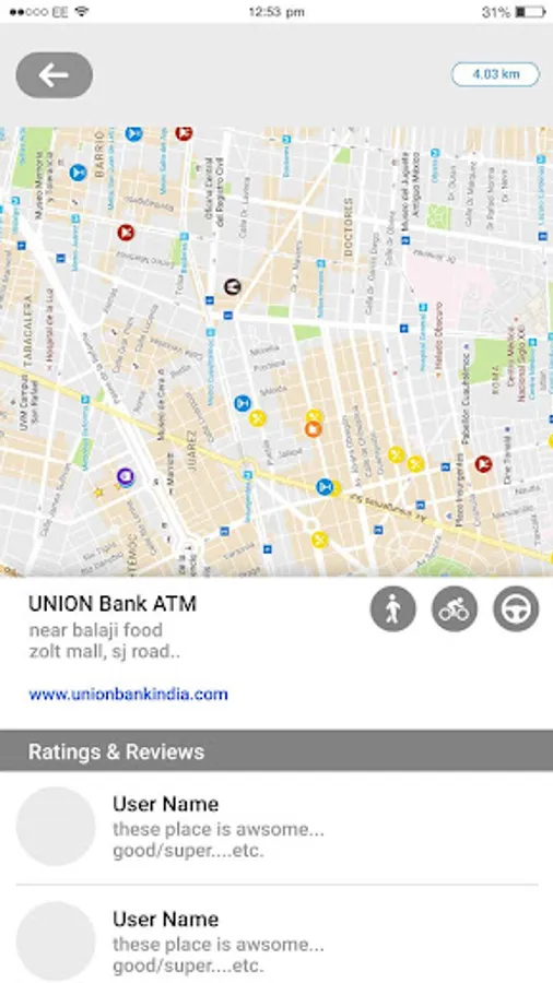 • Displays detailed information such as Ratings, Reviews, Opening Hours and Photos for places.
