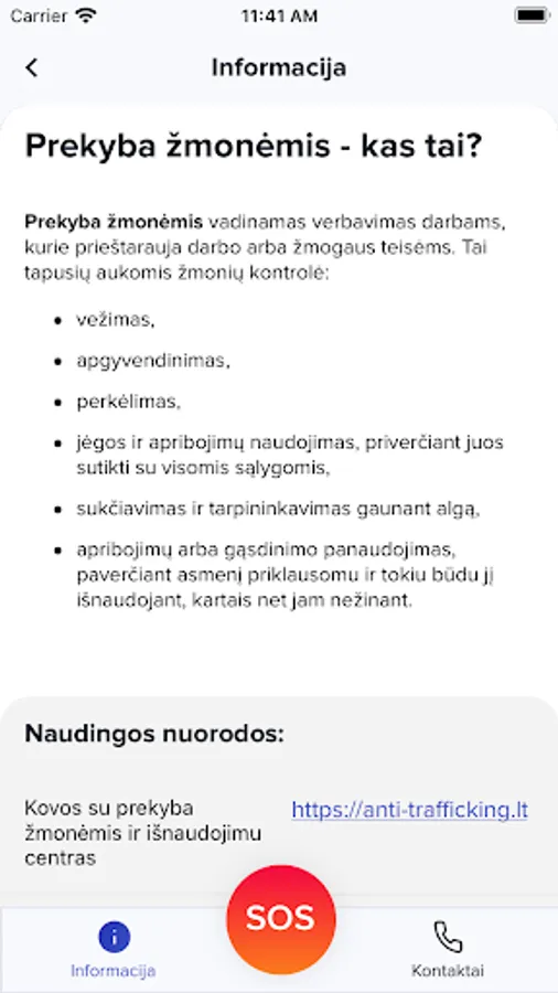 • all necessary help contacts;