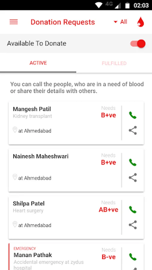 It is easy to request blood through 'raktsevak' App. In case of any medical treatment, emergency; upon request it shows donors near the location. These donors can be called. If by any reason the donors are not able to come, one can look for more donors. Also, the donors can join with very simple registration form. If by any reason one is not able to donate blood anytime, one can choose to make oneself unavailable for donation. The App is absolutely free and simple to use.