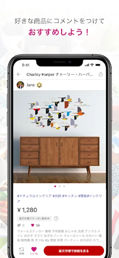 ROOM is a shopping SNS of Rakuten Ichiba that "collects", "connects", and "recommends". By sharing the products you want, you can connect with other people and meet each other's unexpected and attractive products. Furthermore, if someone purchases your recommended product, you can get Rakuten points and earn a little pocket money. Rest assured that it is operated by Rakuten!