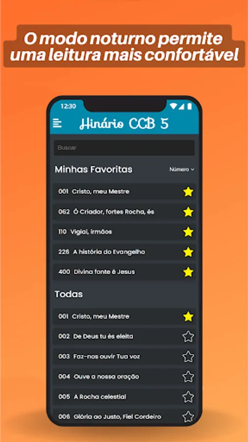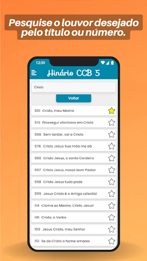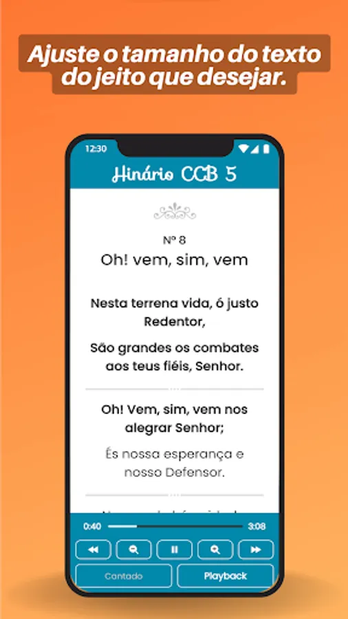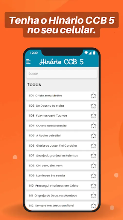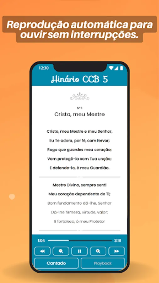 Get the best CCB 5 Hinário with audio, lyrics and playback for your meetings now! With CCB Hymnal 5: Audios, Lyrics and Playback, you can access Hymnal 5 complete with 480 hymns, with quality audio and playback to help you learn and practice your favorite songs.