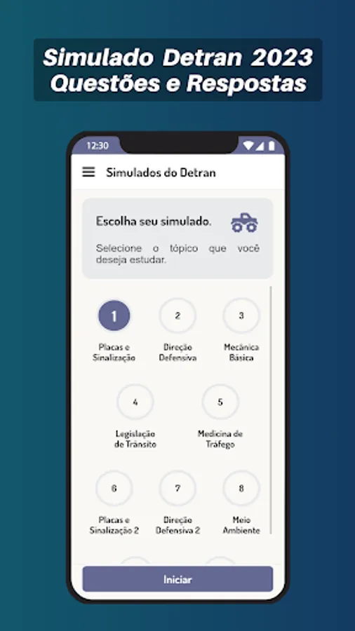 Mock Detran includes hundreds of randomly generated questions and allows you to create your own mock, changing the number of questions, options and time. Keep in mind that the minimum score and time vary by state, but the app provides a good idea of the subjects and questions that may be on the Detran test.