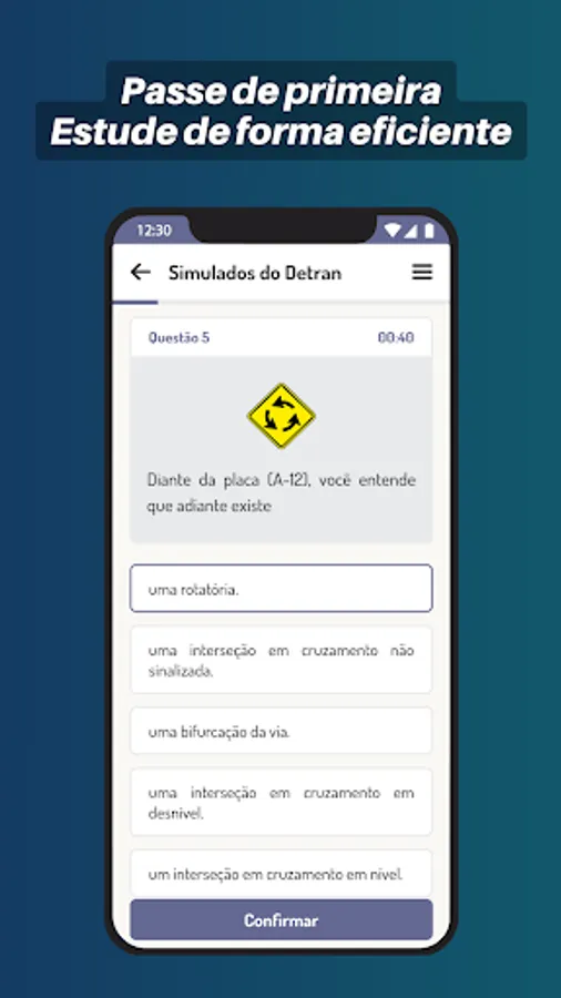 The Simulado Detran application is the best option to study for the theoretical test of qualification or renewal in any state in Brazil, including SP, RJ, DF and MG. With the application, you can do complete simulations or solve separate questions, with time counting and final report, in addition to learning to identify road signs.