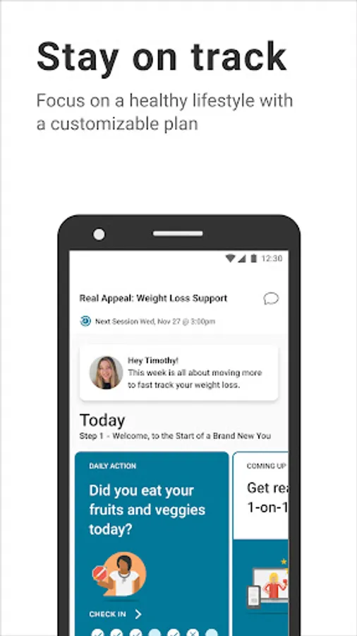Real Appeal Weight is proven to help you achieve real and lasting results. You’ll get all the tools you need to reach and maintain a healthy weight, like weekly online live coaching sessions and anytime, anywhere coach messaging. Plus, trackers for food, activity, weight, and more to help you live a healthier life. Included are separate tracks to help prevent and manage diabetes for you to share, listen to, and learn more about diabetes to live healthier.