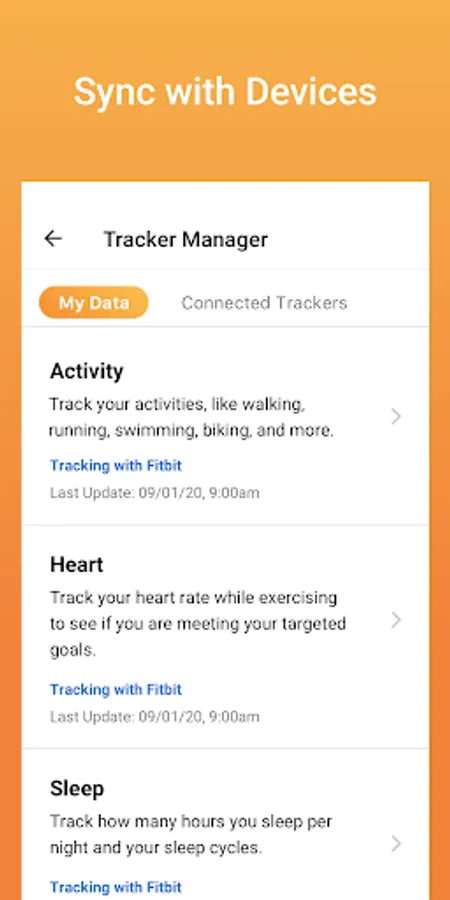 Sync with Devices - Use your phone or other devices such as Strava, Garmin, or FitBit to track your activity