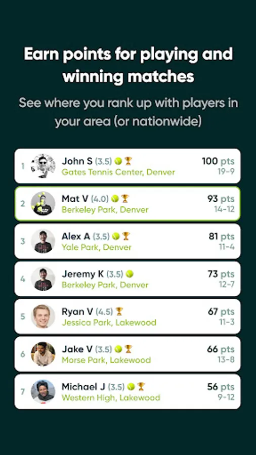 - If you’re competitive, see how your match record compares to others in local and national Rally rankings.