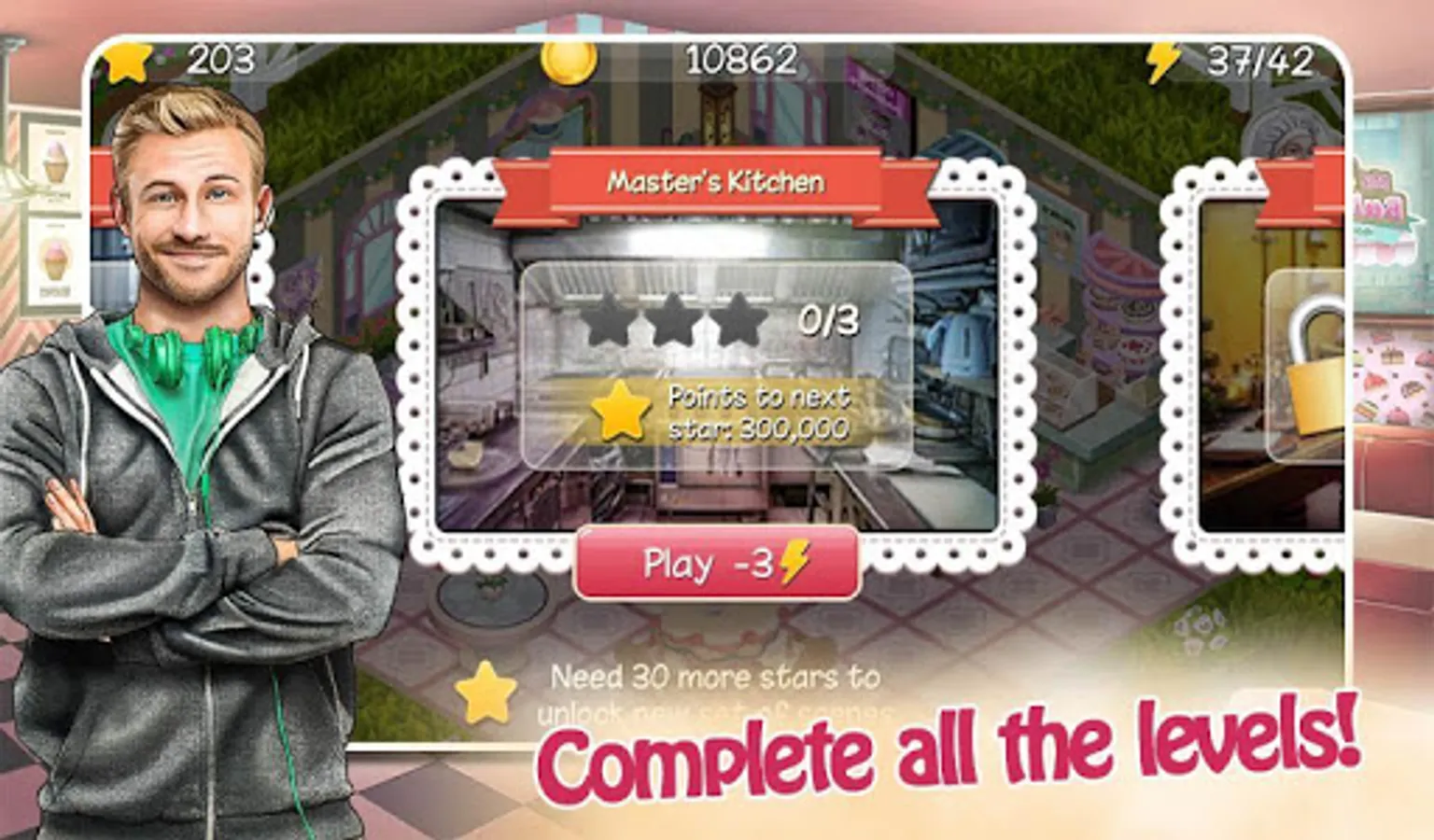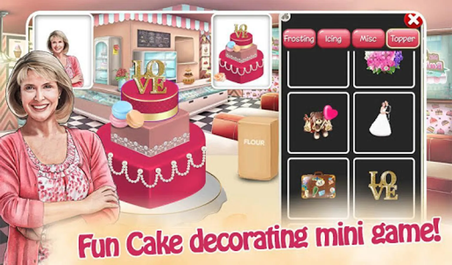 Customers are excited to see you make the cake of their dreams! Earn coins for every satisfied customer. Play hidden object scenes to earn more coins and stars.