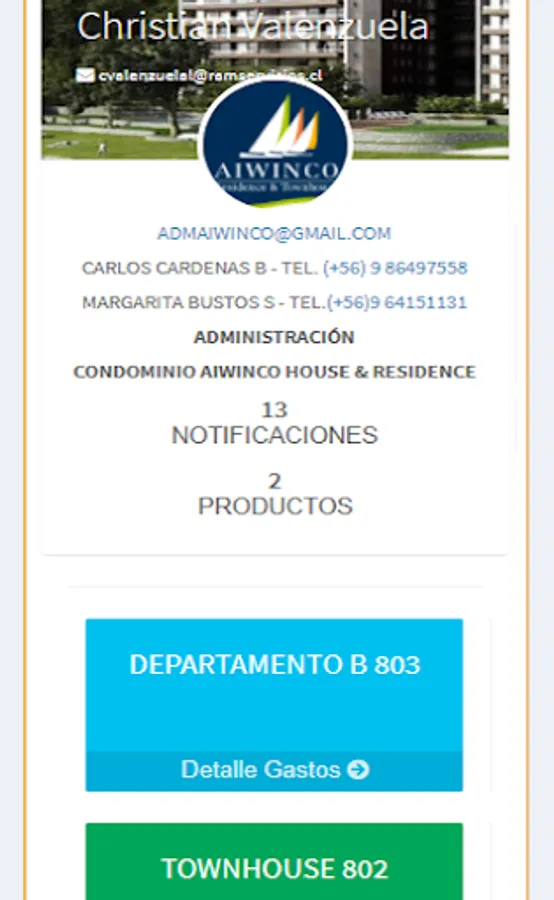 The application seeks to streamline management in the area of common costs of the Aiwinco (Pucon) community grouping information so that it can be interpreted by the user, with the possibility of reviewing previous indicators.