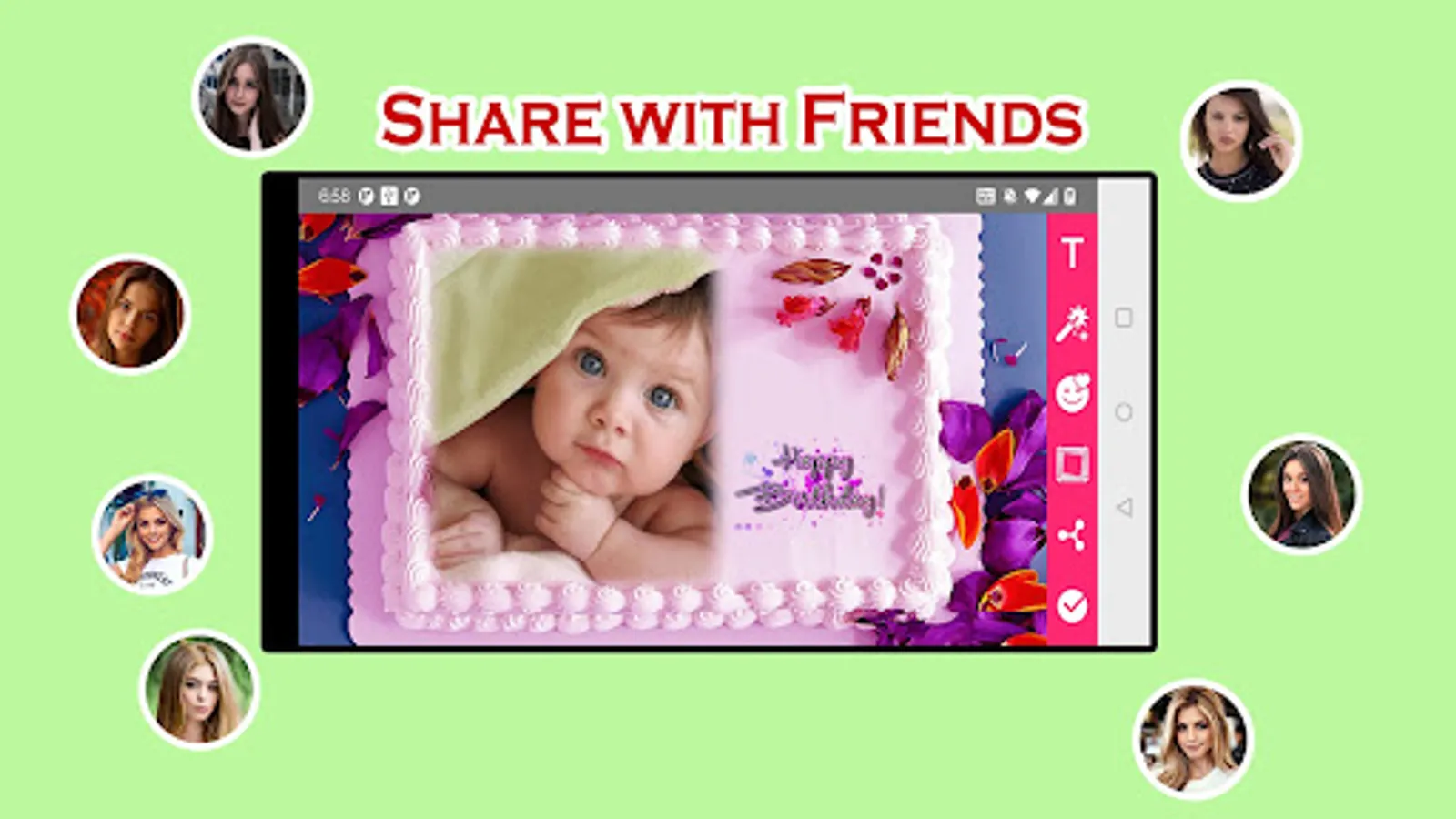 ✔ Save your new edited Birthday cake images and share it instantly on social networks.