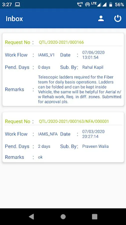 - User can submit and back route the request directly through app.