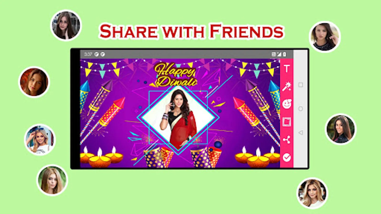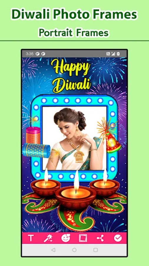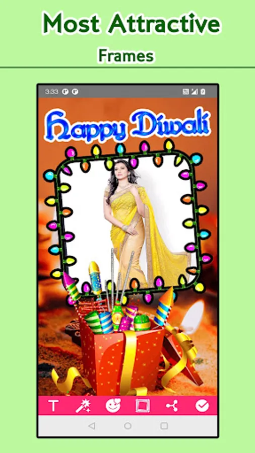 Not only does our app offer a wide selection of Diwali photo frames, but it also provides additional features to make your photos stand out. Apply filters to enhance the colors and add a touch of glamour to your photos. Use stickers and text to personalize your images and convey your festive wishes. Share your creations directly on social media platforms to spread the joy of Diwali with your friends and family.