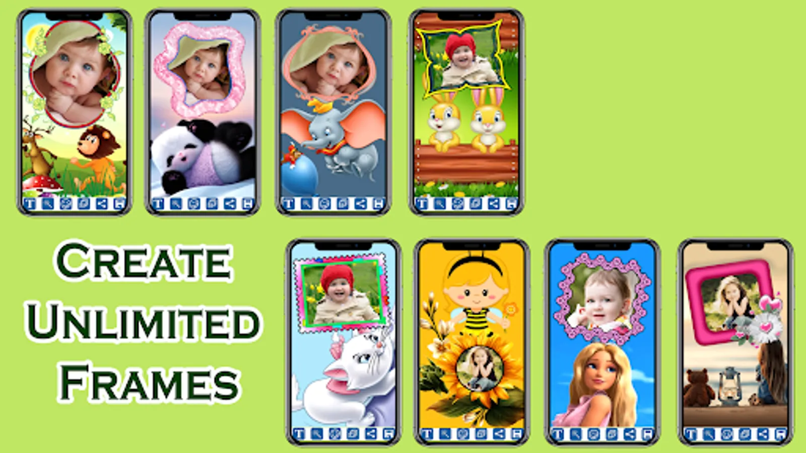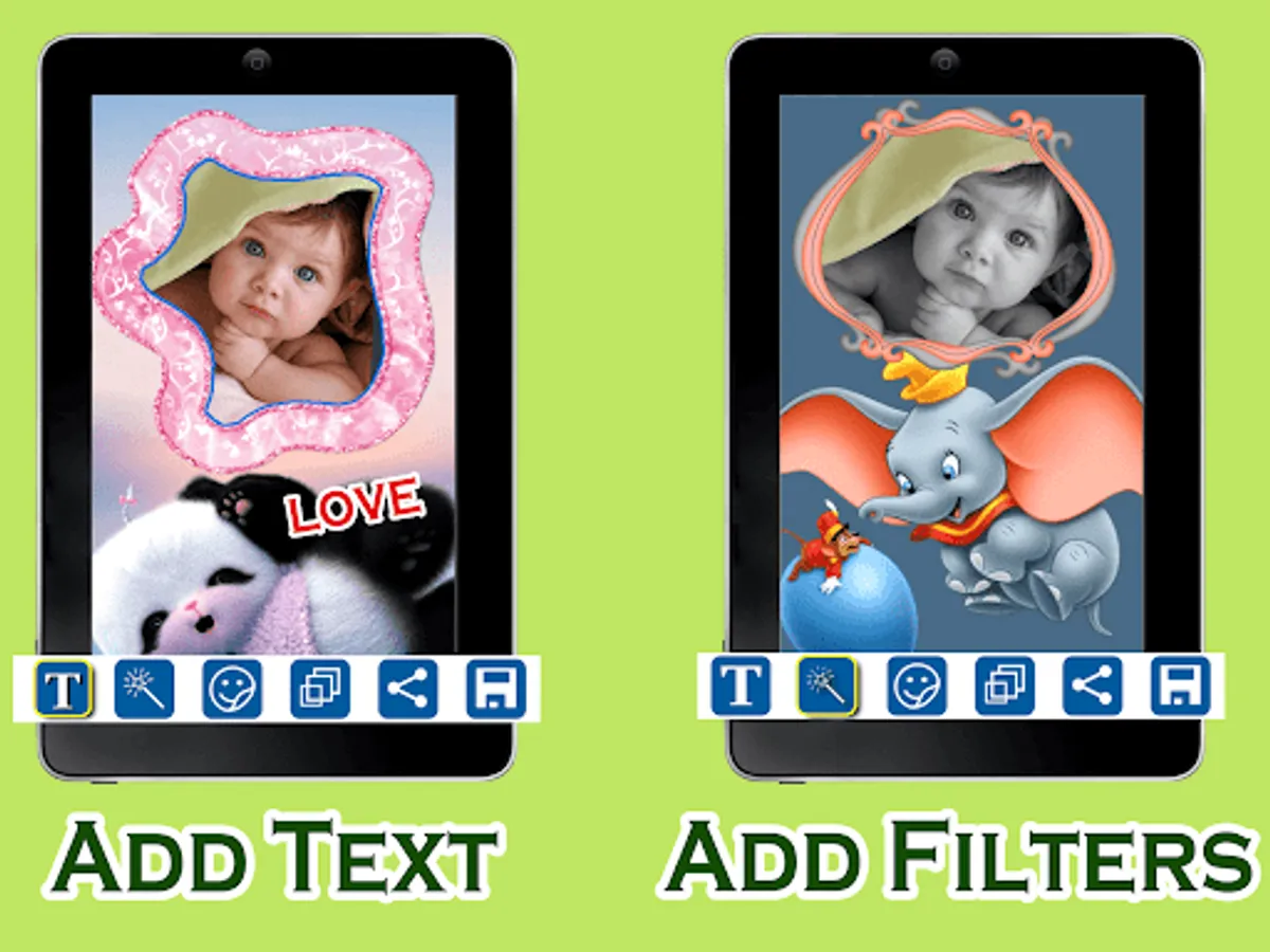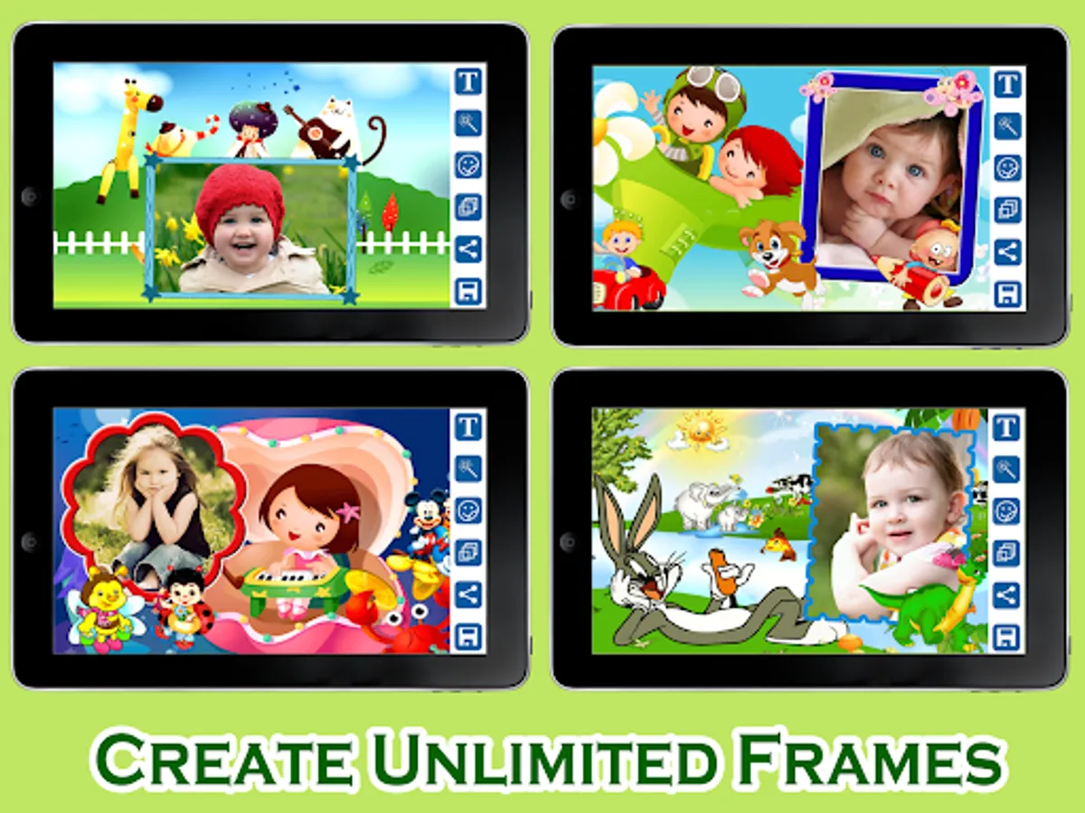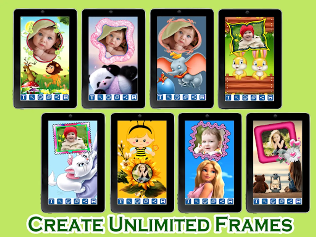 Meet Kids Photo Frames โ Picture Baby Editor which allows you to enter your children's images inside kids photos frames to make lovely kids collage photos, or baby wallpapers, and share them on social media or save on your phone. Creating pretty photos with your loved children or nephews has never been as easy as with this baby picture editor.