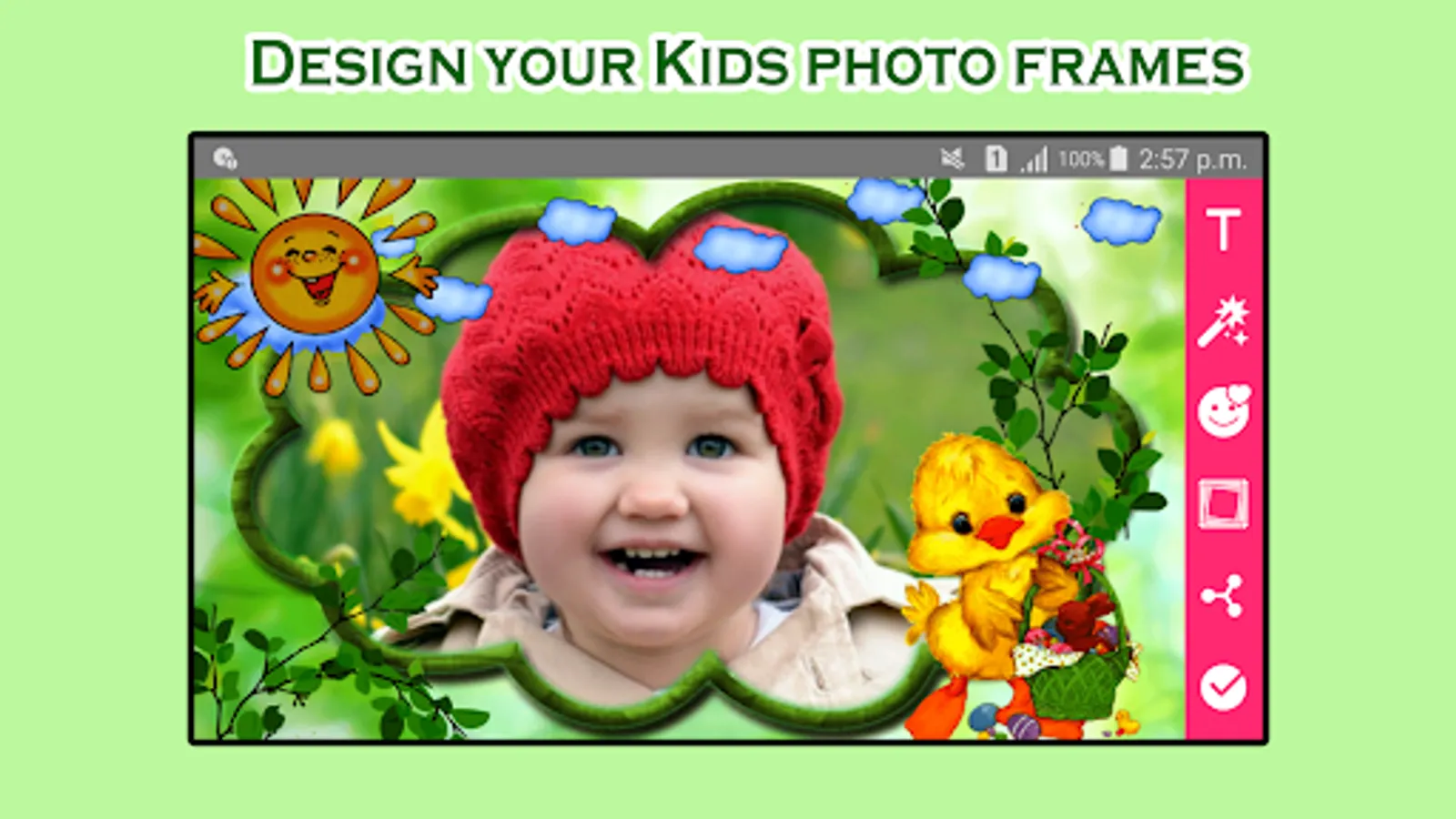 4. Easily apply different colors, photo effects, or fonts to your kids pic frames creations with the kidsphoto editor app.