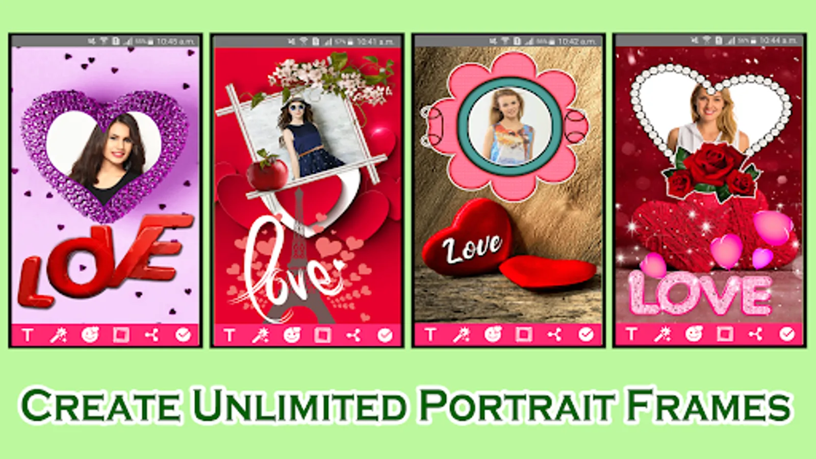✔ More than 50 Love Photo frames are available in this app.