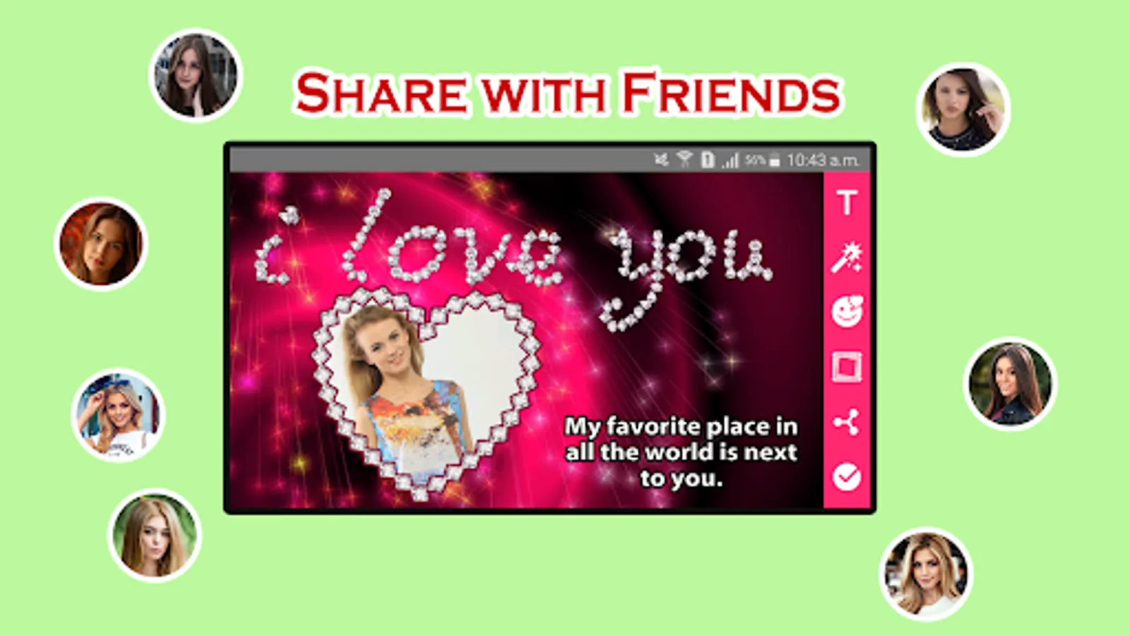 ✔ Save your new edited Lovely Frame images and share it instantly on social networks.