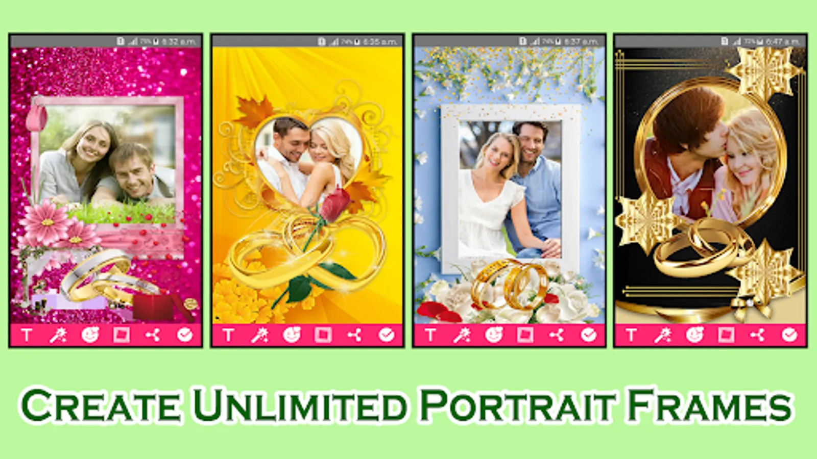 ✔ Marriage Photo Frames app supports all screen resolutions of mobile and tablet devices.
