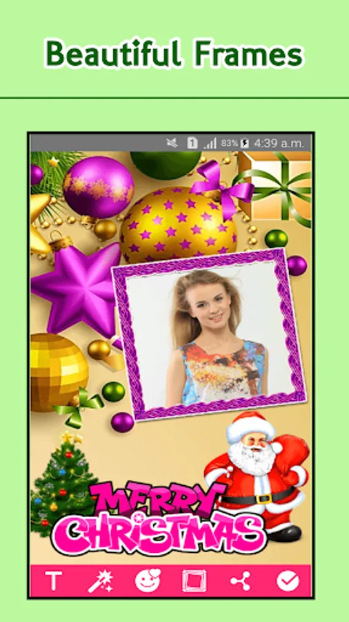 βSelect any photo / picture from Gallery (or) Take a picture using Camera and embed the photo of your choice into beautiful Christmas Photo Frames.