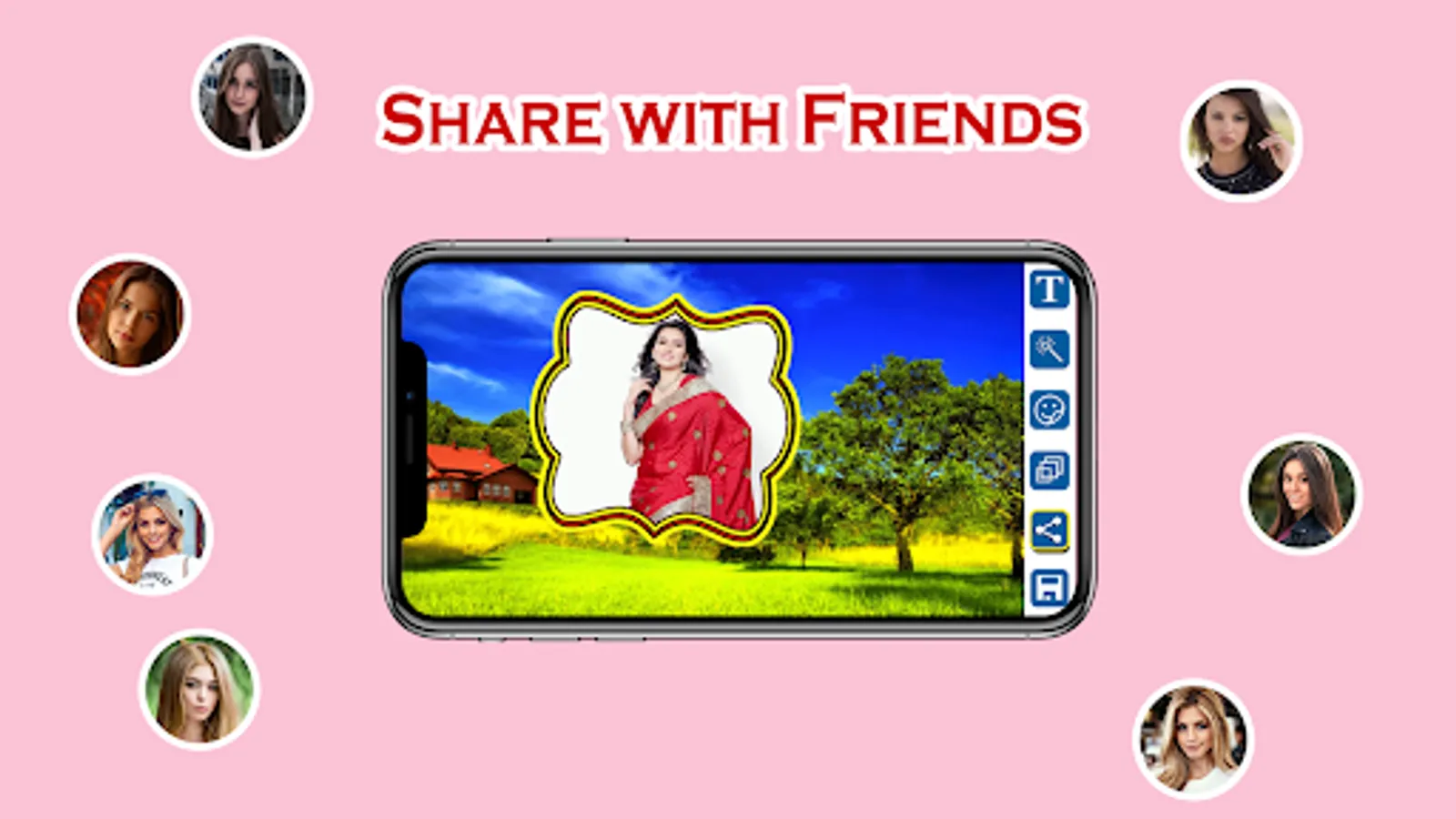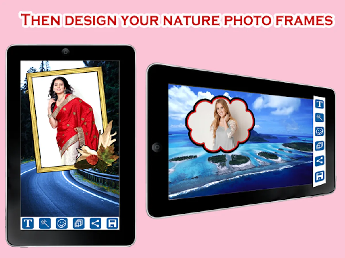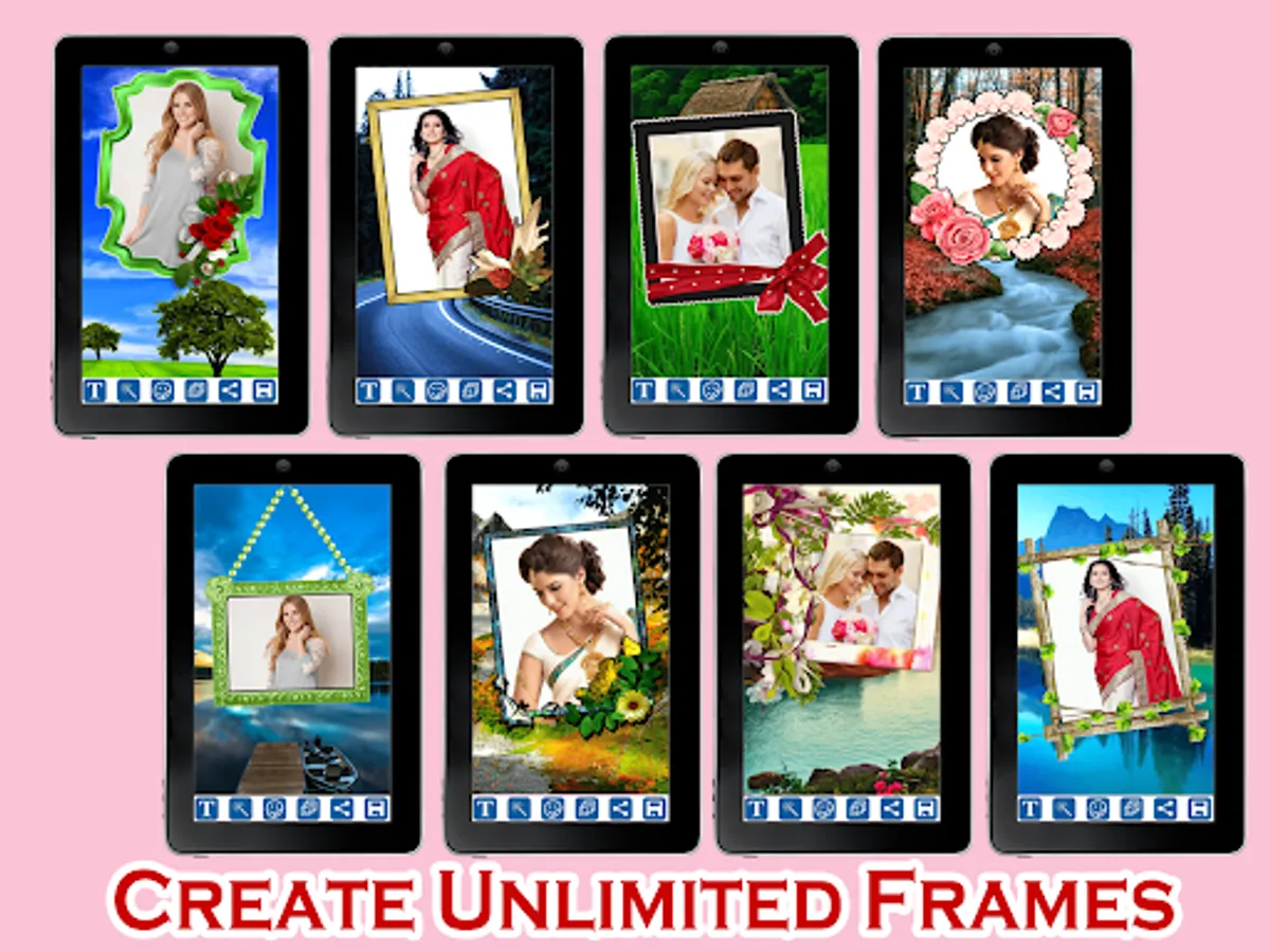 1. Select any photo/picture from Gallery (or) Take a picture using a Camera and embed the photo of your choice into beautiful Nature Photo Frames.