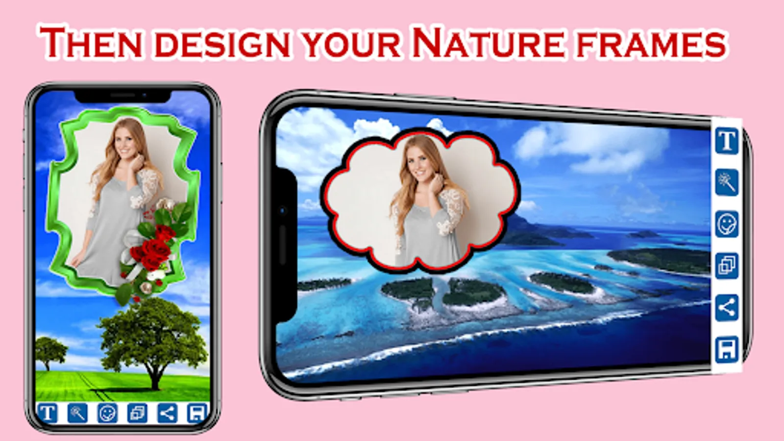 No matter if you need a Nature Photo Frames or Nature Photo Editor, the Nature Frames app is your easy solution. Getting creative with your photos and our nature pictures and photo editing tools is simpler than ever.