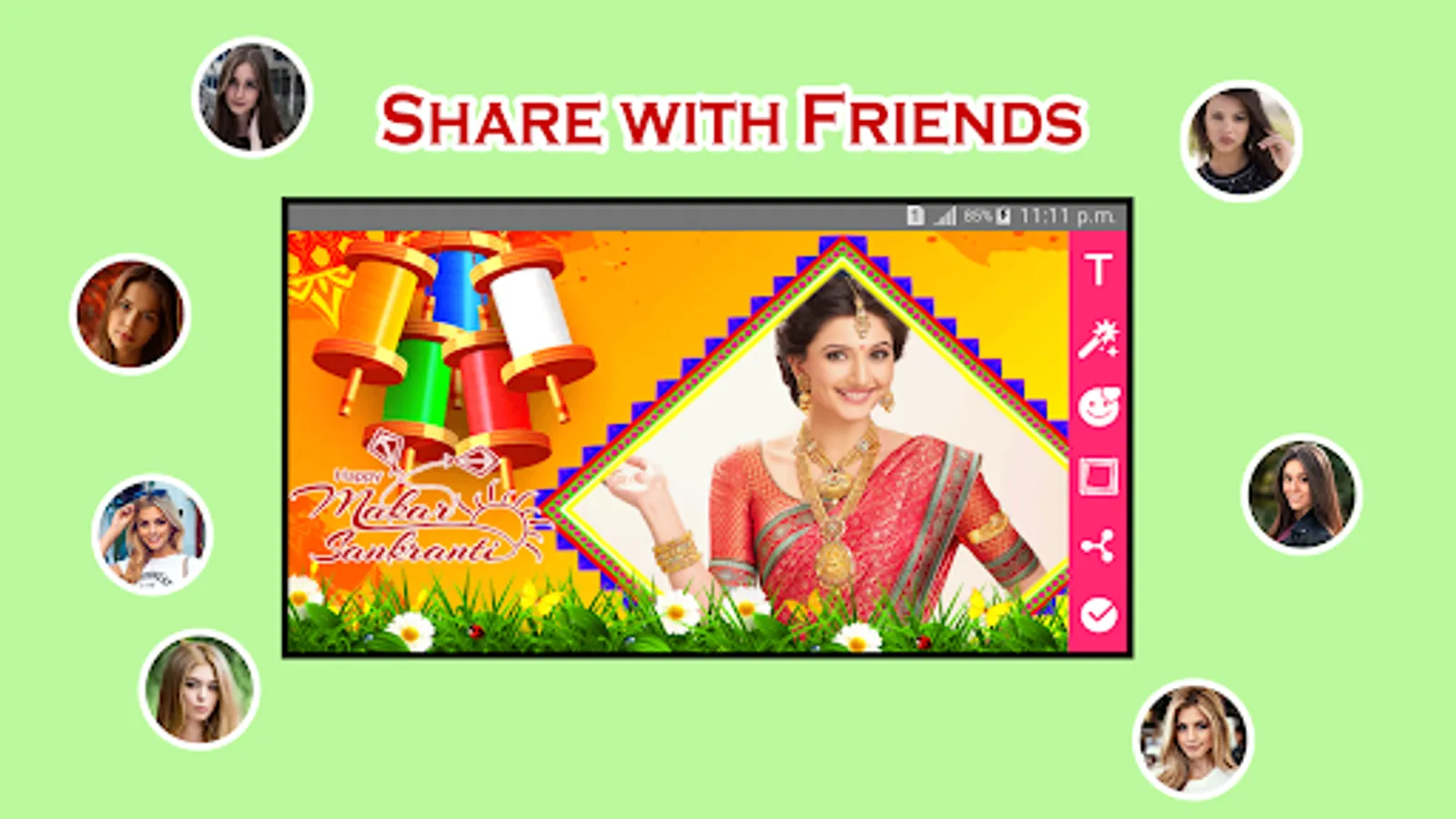 ✔ Screen Compatibility: Our Sankranti photo editing app supports all screen resolutions of mobile and tablet devices.