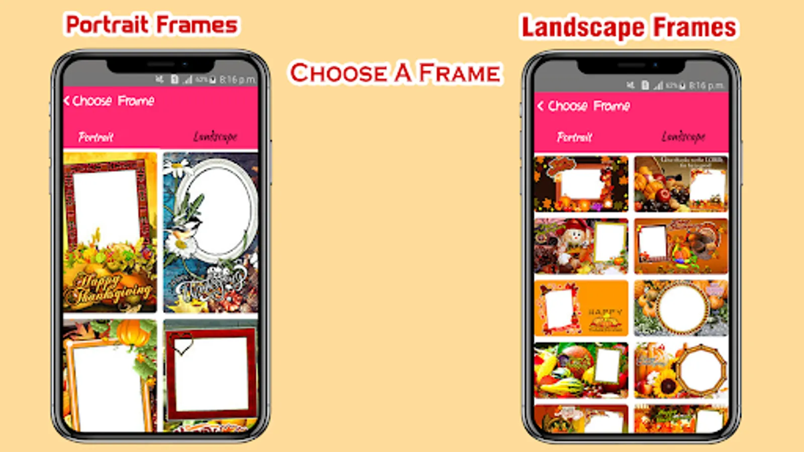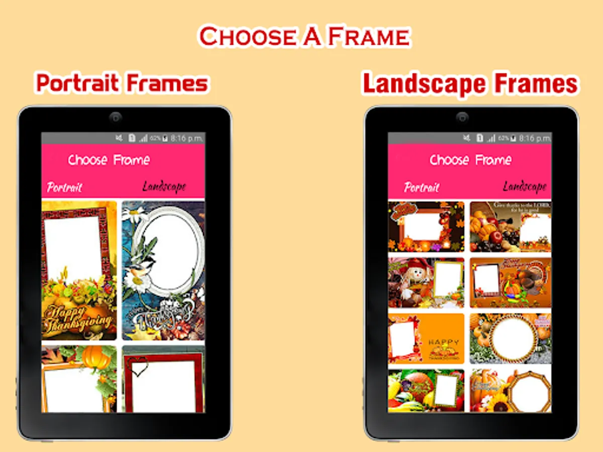✔ Thanksgiving Photo Frames app supports all screen resolutions of mobile and tablet devices.