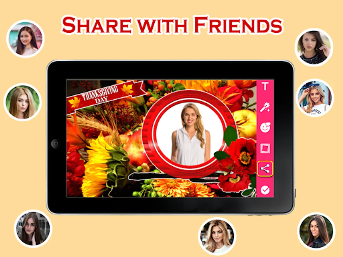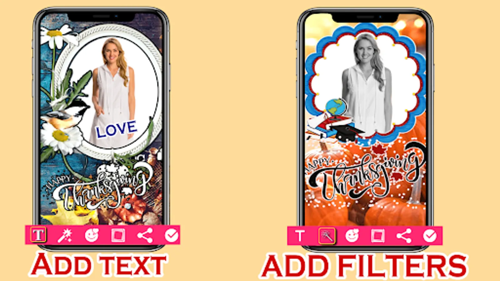 ✔ Save your new edited Thanksgiving Frame images and share it instantly on social networks.