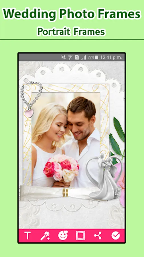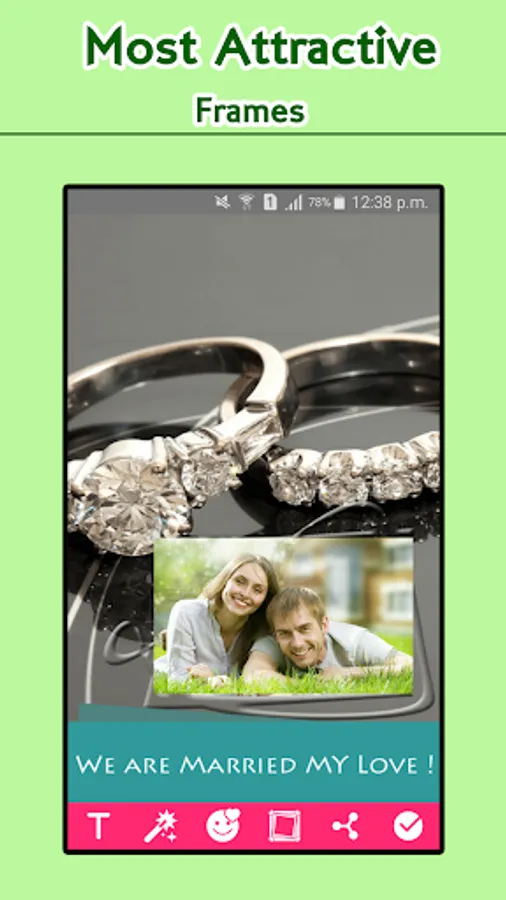 ✔Select any photo / picture from Gallery (or) Take a picture using Camera and embed the photo of your choice into beautiful Wedding Photo Frames.